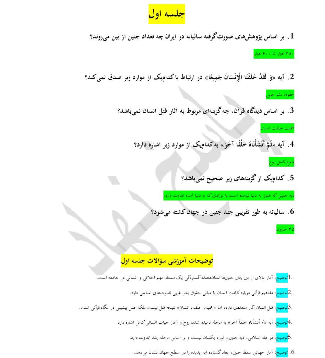 بصورت کامل فایل نمونه سوالات کمکی آزمون نهاد دوره هستی شناسی جنین و اهمیت حفظ آن. بصورت رایگان جلسه اول بصورت عکس برای شما بارگذاری شده است